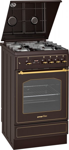 Газовый варочный центр выполнен в стиле ретро в коричневом цвете с бронзовой фурнитурой. Варочная поверхность имеет 4 горелки, одна из них повышенной мощности, одна экономичная, с таймером и газ-контролем. Духовой шкаф оснащен газовым грилем, таймером и газ-контролем. Автоматический электроподжиг упрощает начало приготовления. Паровая очистка облегчит поддержание чистоты.